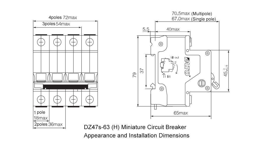 Bộ ngắt mạch thu nhỏ DZ47S-63 (h) được thiết kế để bảo vệ chống quá tải và mạch ngắn trong các hệ thống điện với tần số AC là 50Hz, xếp hạng điện áp tối đa là 230/400V và xếp hạng hiện tại lên tới 100A. Ngoài ra, nó có thể được sử dụng để chuyển đổi các đường và thiết bị trong điều kiện hoạt động bình thường. Sản phẩm này tuân thủ các tiêu chuẩn sau: IEC60898-1 GB10963.1